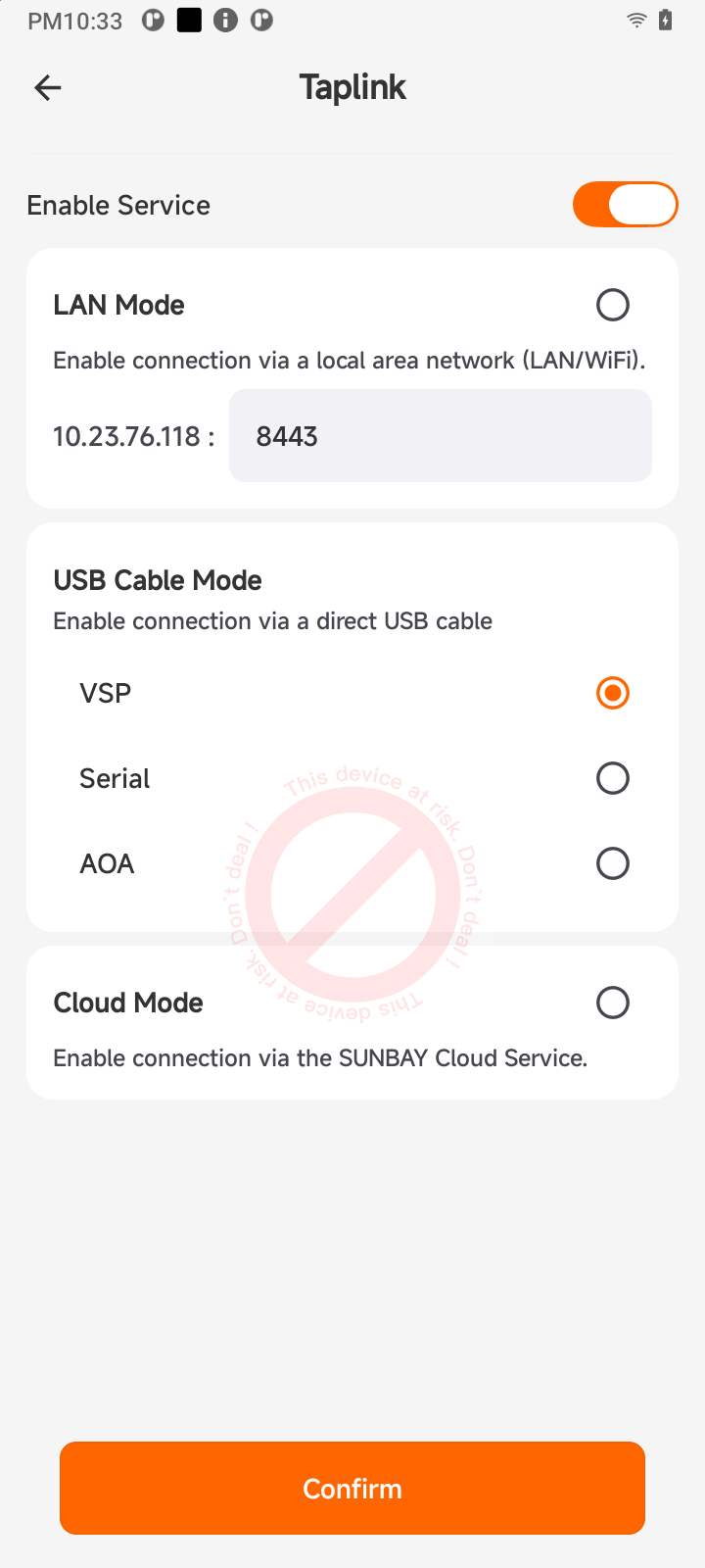 • LAN mode: Enter IP and port (first time) or automatically connect (subsequent)